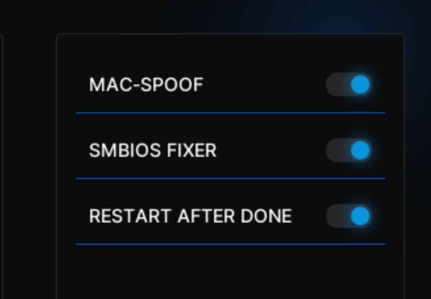 NORMAL SPOOFING, ASUS EFI SPOOFING, HP SPOOFING.